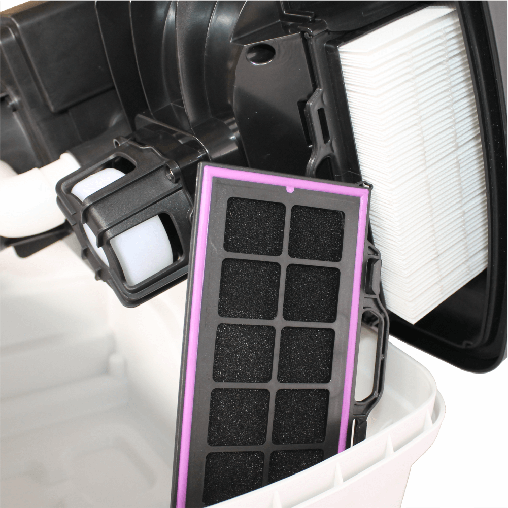 Aspirator profesional AS-501 Bisonte putere 1,6 kW cu aspirare umeda si uscata, echipat cu conductă dublă pentru aer, sac pentru praf integrat, aspiraţie pe apă si sistem de filtrare HEPA de înaltă eficienţă cu trei niveluri, destinat pentru utilizare profesională pentru praf foarte fin.