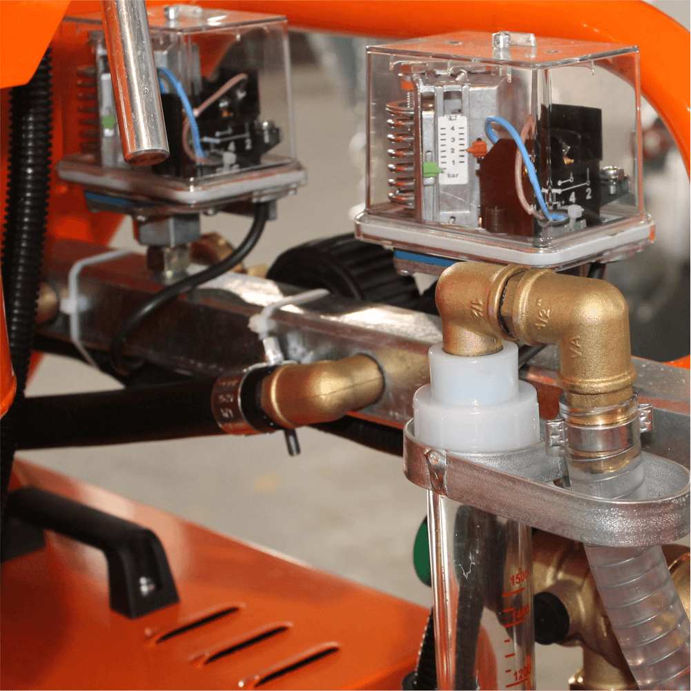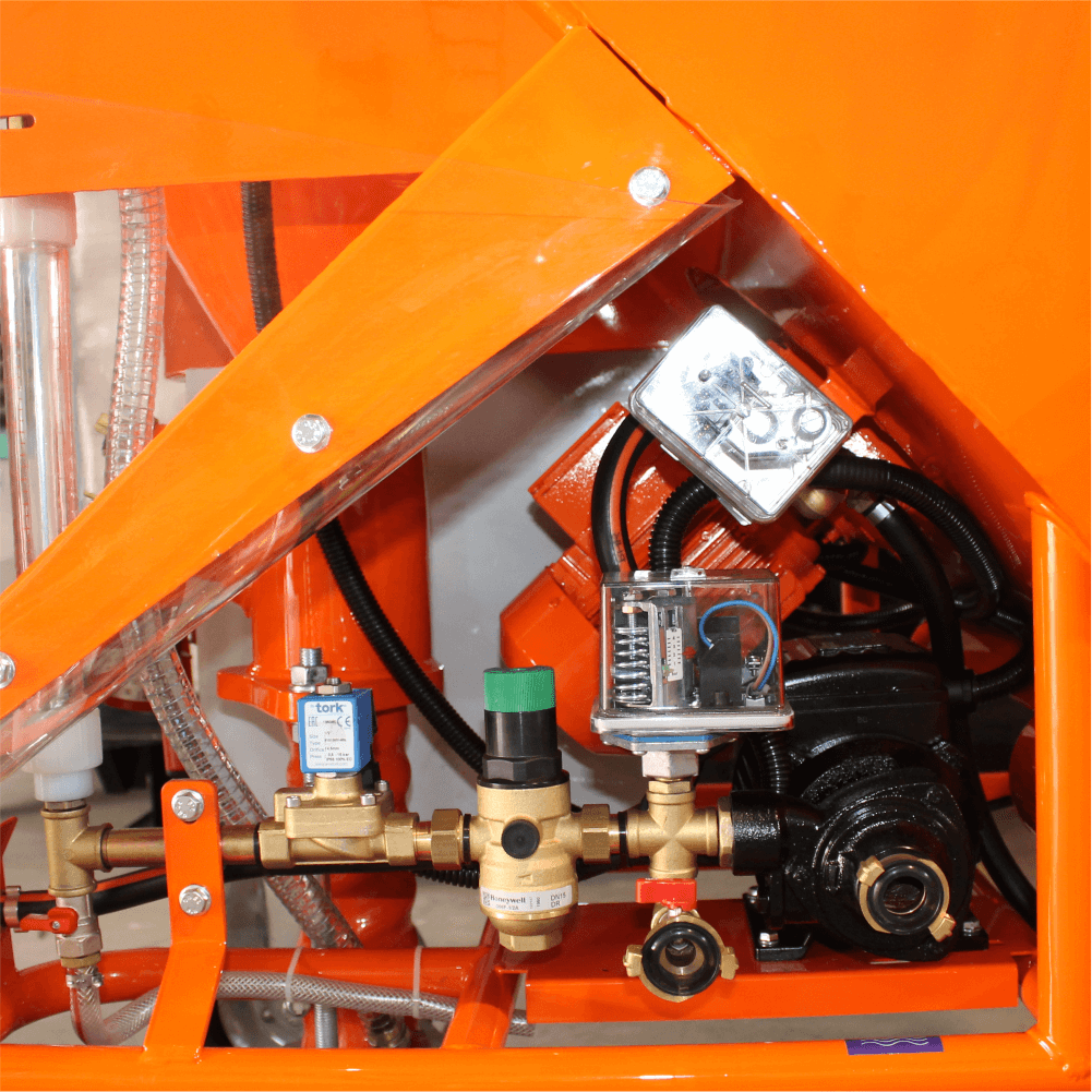 BISONTE PCS-K4 beneficieaza de un raport caliatate pret imbatabil datorita componentelor de inalta calitate utilizate: motor malaxor cu reductor pentru utilizare intensiva, echipament electric, pompa de apa, presostat si reductor, toate produse in Germania;