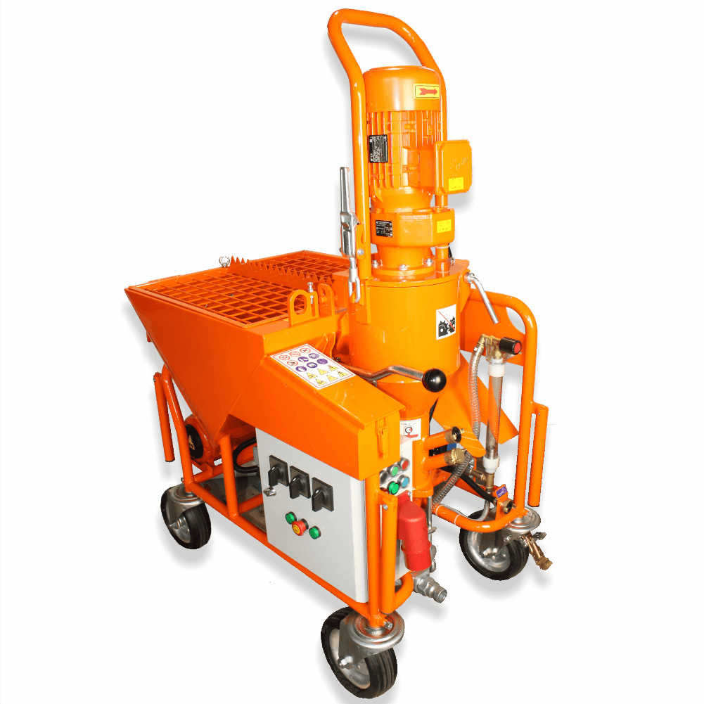 BISONTE PCS-K4 380V este o masina de tencuit de mare capacitate, ce poate si utilizata pentru amestecarea si pulverizarea continua a tencuielilor mecanizate pe
